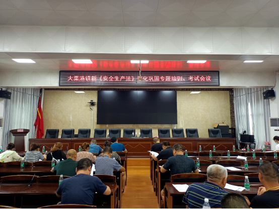 6月30日,大栗港镇应急管理办公室工作人员组织辖区内危化、工贸重点企业负责人和八个渡口的法人代表进行新安全生产法考试。