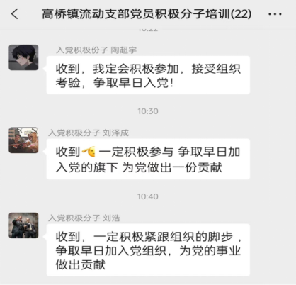 高桥镇广州流动支部组织在线学习,并对讲课内容进行了热烈讨论,支部入党积极分子表示将认真领会讲话精神争取早日加入党组织,为高桥谋发展,为家乡做贡献。