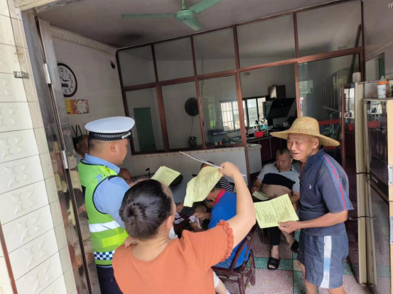 向群众发放《交通安全知识宣传单》,并讲解农村道路交通安全法律法规