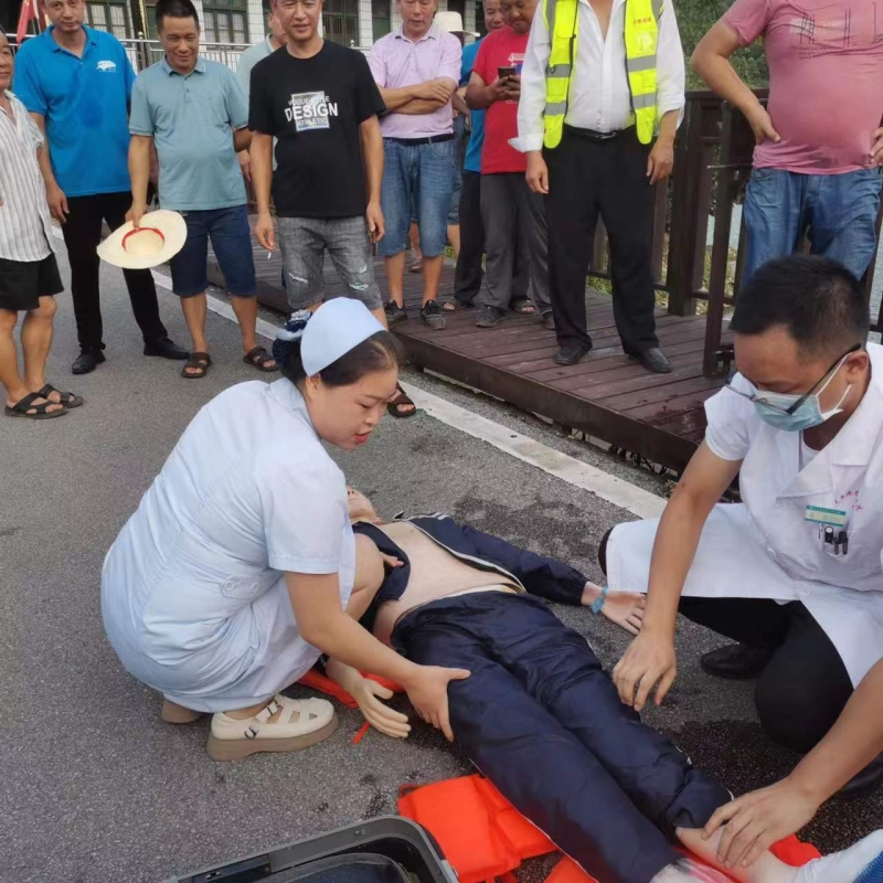 应急演练模拟有人不慎落水,水库巡逻人员发现后立即呼叫救援工作队。救援工作队随即携带救生圈、救生杆等救援物品,第一时间赶到现场对落水者进行救助。首先向落水者抛掷救生圈,落水者套上救生圈后,再利用救生杆将其拉上岸。随后,救援运输人员用担架将落水者抬到路边,医生随即进行现场施救,并向在场人员详细讲解需要注意事项。观摩人员纷纷表示,近距离观看落水救助演练,更深刻认识到了防溺水的重要性,以及学习了危急时刻救援的技能。
