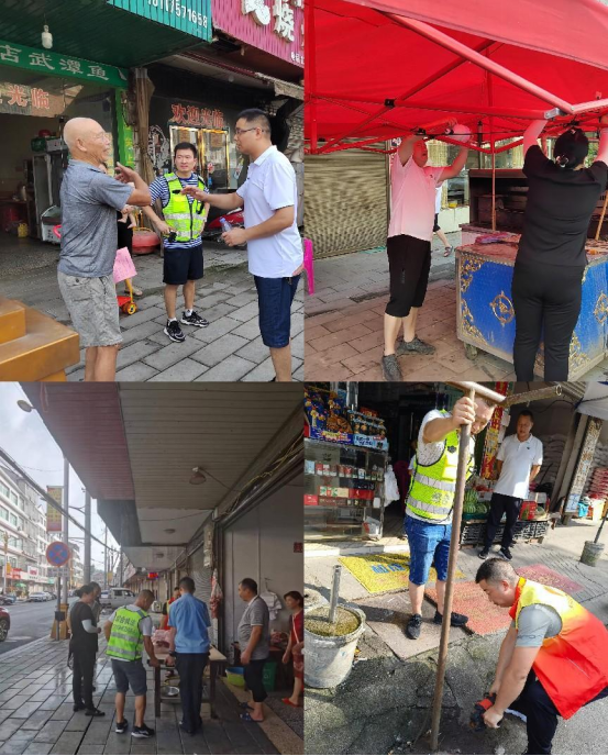 7月20日,武潭镇联合派出所、马迹塘交警中队等部门单位共80名党员干部对镇区乱停乱放、占道经营、环境卫生、乱堆乱放等镇容镇貌问题进行集中整治。