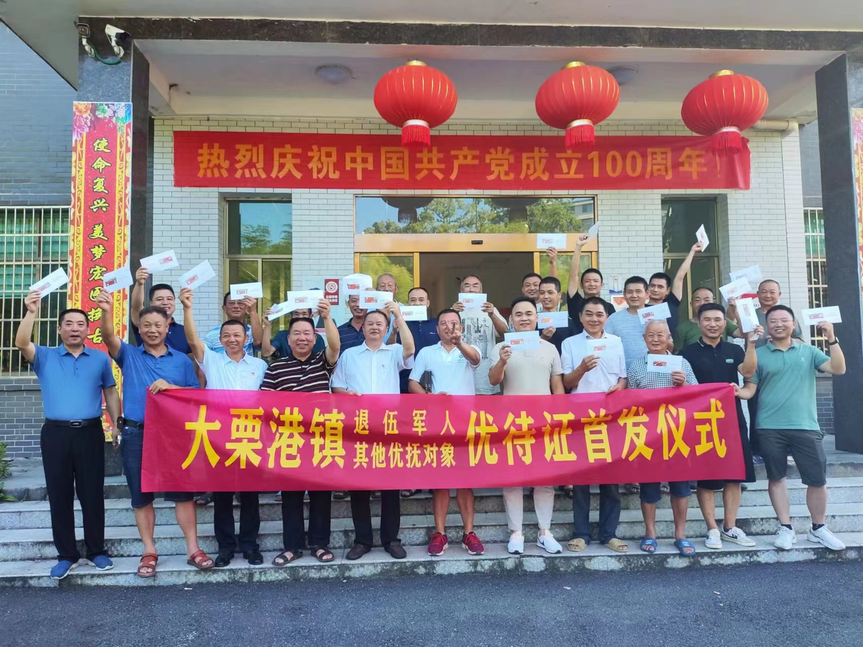 7月22日上午,大栗港镇举行退役军人及其他优抚对象优待证集中发放仪式,该镇83名退役军人领到首批优待证。