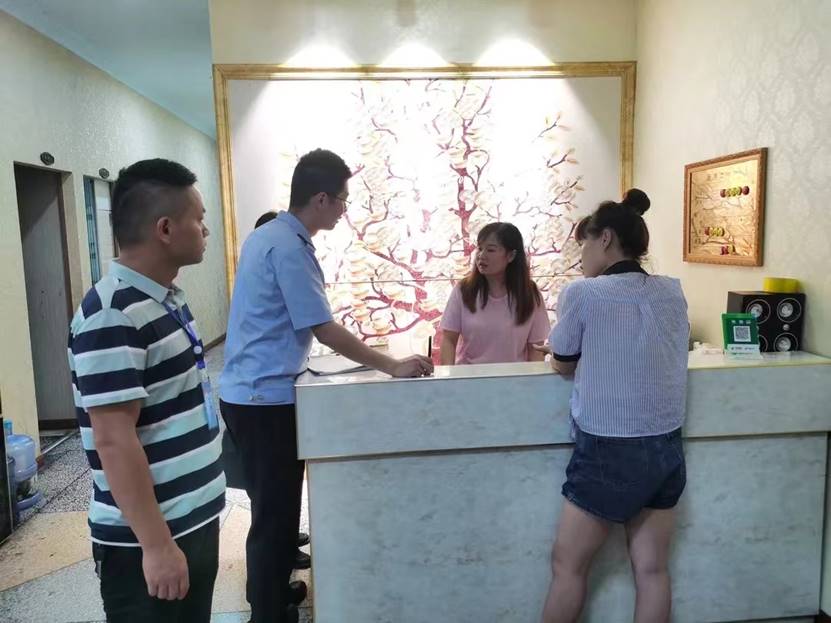 整治行动中,各部门分工明确。市监所工作人员重点检查各场所是否办理和悬挂营业执照、营业执照与经营实际是否一致、是否存在销售假冒伪劣商品行为、是否存在虚假夸大宣传行为;镇综治办、派出所重点排查是否存在赌博机、营利性陪侍、卖淫嫖娼等违法行为、“严禁吸毒贩毒、严禁卖淫嫖娼”宣传牌是否放置在显著位置、基本消防器材是否配备到位、消防设施是否正常运行、安全出口和疏散通道是否畅通、员工是否掌握基本消防安全知识等内容。同时,此次专项行动还对经营场所的安全管理主体责任是否落实、各项安全管理制度是否上墙等。