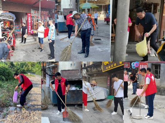 8月15日,武潭镇组织镇市监所、派出所、交通执法七中队等部门工作人员开展卫生大清扫。