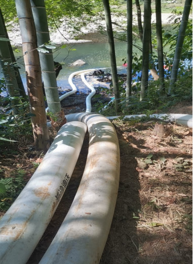受到增援的镇村干部们精神大振,与救援队一起投入抗旱工作中。架设临时泵站,清理渠道,铺设400米抽水管道……工作有条不紊地进行,仅用两天时间,就已实现每小时供水2000吨,沾溪河和水库的水被顺利引到九螺坊支渠,解决了九螺坊村1500亩稻田干旱缺水的“燃眉之急”。
