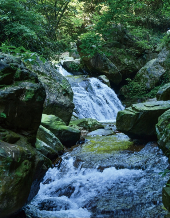 村南端的平移断裂带附近,垂直节理十分发育,经构造运动、流水侵蚀、风化剥蚀等内外力共同作用,峡谷深切,形成了蔚为壮观的罗溪瀑布,其高差103米,如银河落地,白练垂空,被誉为“湘中第一飞瀑”。