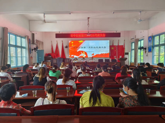 8月25日上午,石牛江镇组织召开第三届第一次妇女代表大会,圆满完成妇联换届选举工作。