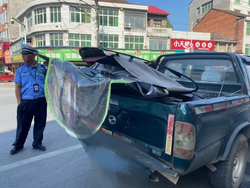 行动中,执法人员在镇区各主要路口处设置检查点,对摩托车、电动车非法加装的伞具一律依法强制拆除收缴,并向驾驶员讲解非法改装车辆存在的安全隐患,教育广大电动车驾乘人员摒弃交通陋习,为自己生命负责,为他人负责。同时,还耐心对未按规定佩戴安全头盔的电动车、摩托车驾乘人员进行教育劝导,向他们宣传骑乘摩托车戴安全头盔的重要性。