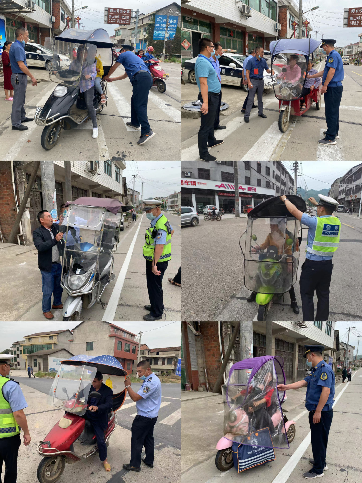 此次行动,修山镇应急委组织综合执法大队、交警中队、交通执法大队四中队、派出所进行联合执法,对摩托车、电动车安装伞棚进行现场拆卸,对未佩戴安全头盔等交通违法行为予以处罚,全力推进摩托车、电动自行车“戴帽工程”真落地、见实效。重点对超载超限、违规载人、无证驾驶、等违法现象进行整治,发现一起,纠正一起、制止一起、打击一起,坚持宣传教育和处罚相结合。