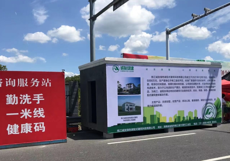 近日,由桃江诚友绿色装配式建筑科技有限公司捐赠的2个集装箱板房在桃花江收费站正式投入使用,助力疫情防控工作。