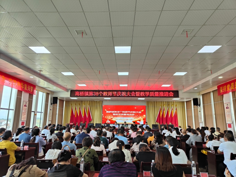 9月8号,高桥镇庆祝第38个教师节暨教学质量推进会在政府五楼大会议室隆重举行,全镇156名中小学校教师参加会议。