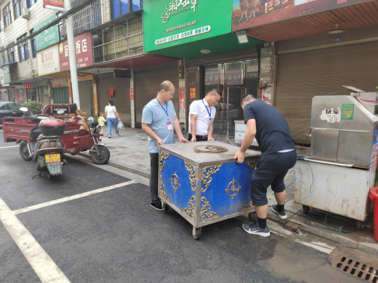环境整治小组在板桥路、资江路、桃花新城广场周边等主要干道开展路面打扫、垃圾拾捡、小广告清理等工作;秩序维护小组采用“说服+帮搬”的方式,对集镇及其周边所出现的沿街车辆乱停乱靠、商贩占道经营、乱搭乱建等不良行为进行劝导整治;巡查监管小组则沿镇主要干道、桃花新城广场周边集市开展回头看巡逻,检查相关路段交通秩序、卫生清洁情况以及相关商贩占道经营整改情况,齐抓共管引导群众维护镇域卫生,营造的良好人居环境。