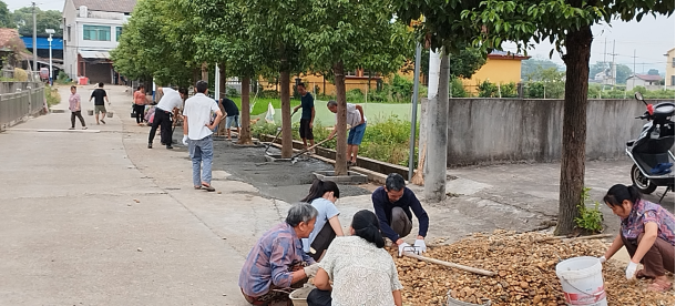 村民对路沿进行填补美化