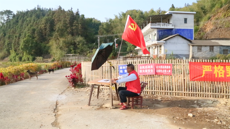 森林防火检查点是德茂园村另一处新兴风景,一人、一桌、一椅、一把自制的遮阳伞,党员志愿者刘凤鸣就是以这样的配置,每天驻守着村里主要的进山通道。“我每天主要任务是守着这个检查点,尽量不让人进山,进山的要他们把烟和打火机留下,绝对不能带火种到山里面去。村干部每天都来检查两次,大家也很遵守规定,这段时间很少有人进山。”德茂园村党员志愿者刘凤鸣说道。