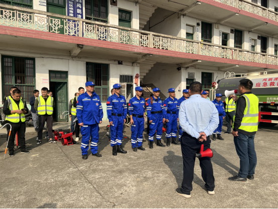 图为镇应急救援队组织队员紧急集合 彭皓云摄
