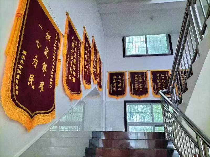 金杯银杯,不如群众的好口碑。2022年上半年,九螺坊村群众自发敲锣打鼓给村党总支送来锦旗21面,一面面“心系群众办实事,情暖百姓解民忧”“为民排忧情深似海,为民办事关怀备至”……挂满了九螺坊村委的走廊过道。