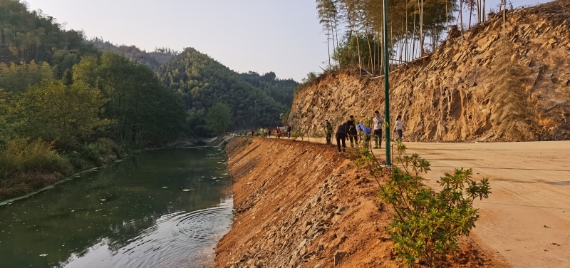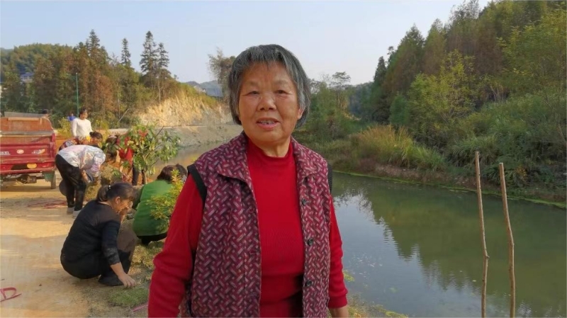 在该镇松柏村,75岁的周最香奶奶正与10多位相邻一道在罗溪一侧铺上草皮,这条800米长、4.5米宽的沿江风光带是村上美丽屋场的一部分。今年7月份,村支两委决定,以村部为中心,在村部周围建设美丽屋场,其中罗溪沿江风光带是重要的建设项目,前不久,这里安装了路灯,但是草皮还没有铺上。几天前,村上买来了草皮,为了节省资金,村里在网格群倡议,号召村民帮忙,得到了不少村民的积极响应与参与,周最香奶奶就是其中的一个。她说:“村上建设美丽乡村,我们都自愿来帮忙。这里建好后,晚上路灯亮了,我们可以来这里散步,路好走,好幸福。”