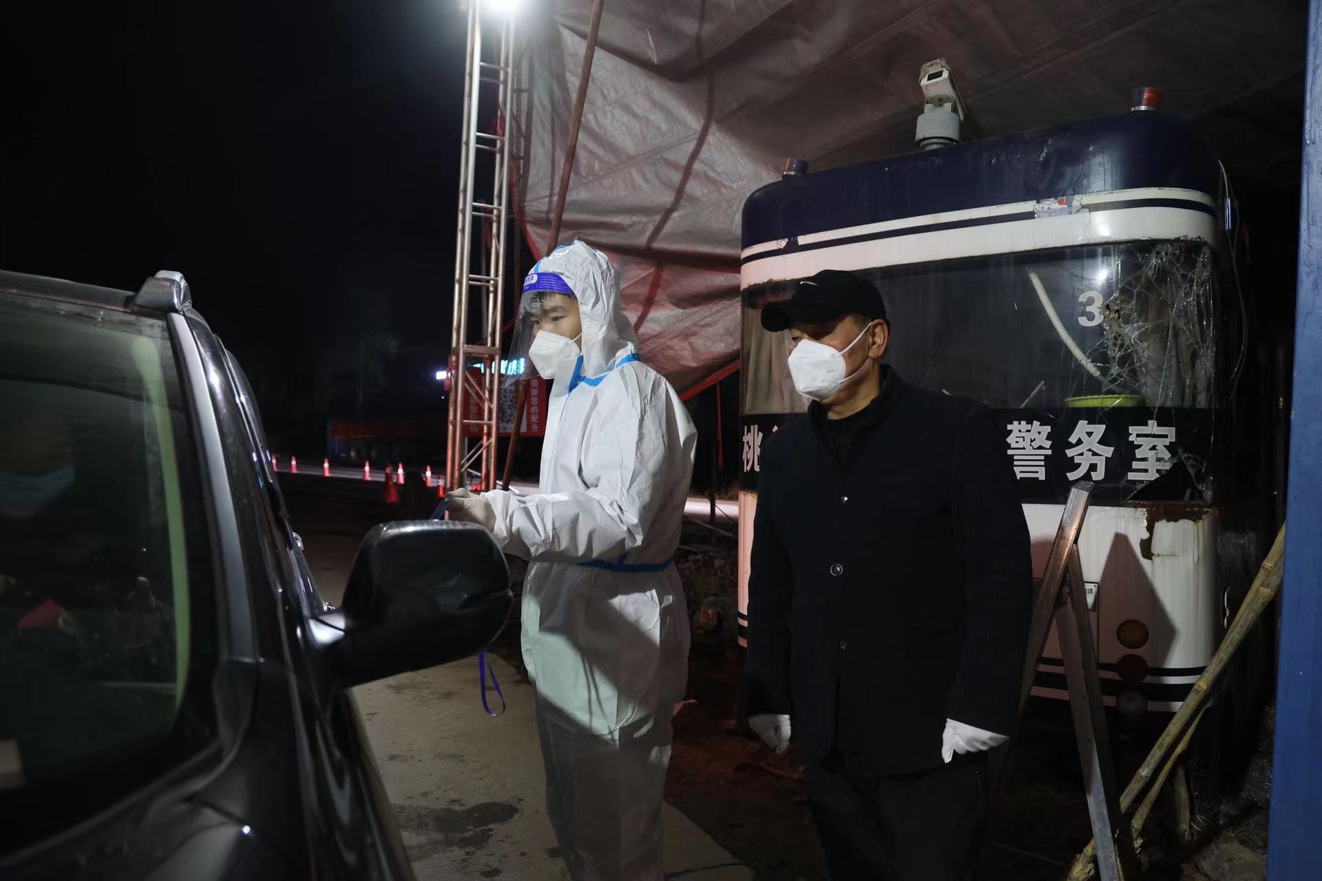 一顶帐篷,就是一个哨所。当天晚上12点,记者来到与宁乡交界的雪峰山卡点处,公安民警和政府工作人员仍在对进入封控区的车辆进行一一查验,他们用责任和奉献抵御寒冷,坚决守好疫情防控前线。