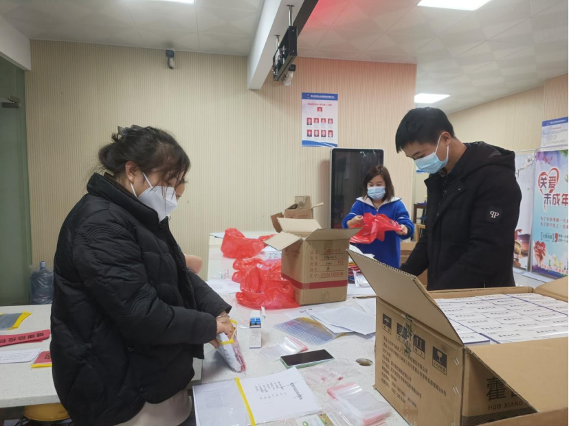 1月5日晚上9点,浮邱山乡政务服务大厅灯火通明,工作人员正有条不紊地对防疫物资进行分装。
