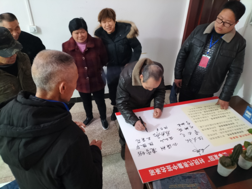 2月22日,浮邱山村开展村民代表履职承诺书集中签名活动,共计56个村民代表参加。