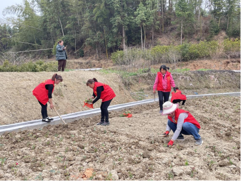 近日,一辆辆载满了玫瑰花苗的小型货车陆续驶入浮邱山乡新桥村美丽屋场,清新的气息扑面而来,身穿红马甲的志愿者们俯着身子,正忙着松土翻地,成为一道靓丽的风景线。