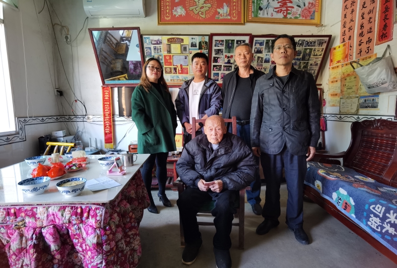 3月10日上午,武潭镇石桥村百岁抗战老兵夏国南(原名夏霖)家里来了几位特殊的客人,这几位客人是分别来自武潭镇退役军人服务站的工作人员和一位叫汪志龙的律师,他们转交了徐中潮、薛军、谭智勇等几位爱心人士自发捐赠的慰问金。