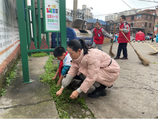这些“小雷锋”当天的目标是这把三条街巷清扫一遍,拔除街边杂草。扫地看似容易,其实也是个技术活,三个孩子一组,一字排开,齐头并进,劳动变得高效还有趣。拿撮箕的同学来来回回地跑着,接到垃圾就送往垃圾箱,还边走边观察四周,时不时把漏扫的落叶、纸屑捡起来。学校大队辅导员刘雅丽老师蹲在墙根专心拔草,她的学生们也悄悄蹲下,细心地拔起草来,左右手都不闲着。渐渐地,街道光洁如新,巷子里也更整洁干净了。