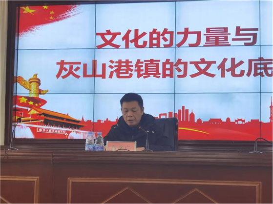 灰山港镇文联主席高文广讲授《文化的力量与灰山港镇的文化底蕴》