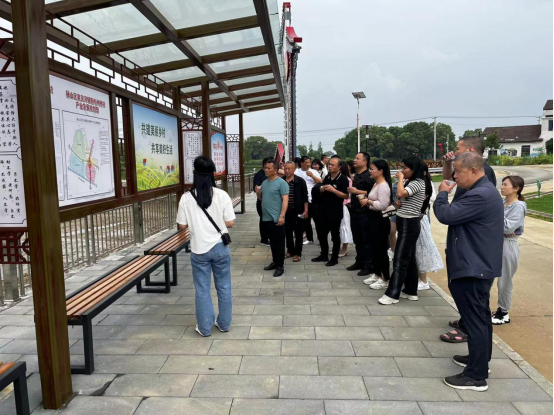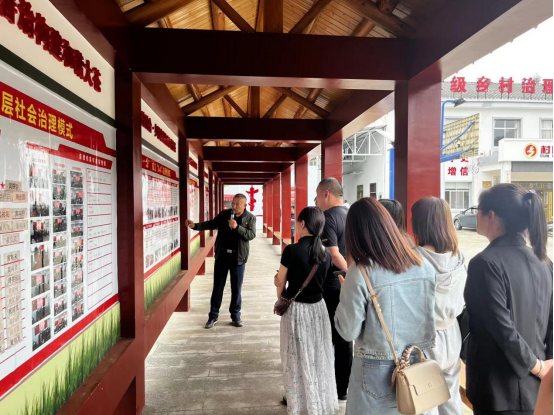 沾溪镇一行人先后参观了三里村河东片区墙体彩绘、白泡潭文化广场、四长广场,通过看展板、赏实景、学经验详细了解三里村在党员教育管理、人居环境整治等方面的优秀做法。在随后的座谈会上,三里村党总支书记吴宗让围绕基层治理工作“六治”措施和河东公路提质改造工程创新推出的“三来四自”模式做了详细解说,并就如何充分发挥乡贤作用带动村级治理作了经验分享。通过大苍村村支书刘品一对文化走廊的详细介绍,了解到了大苍村历史文化名人及典型事迹、优秀党员和明星村民光荣榜、党建引领助推乡村振兴发展规划图等。