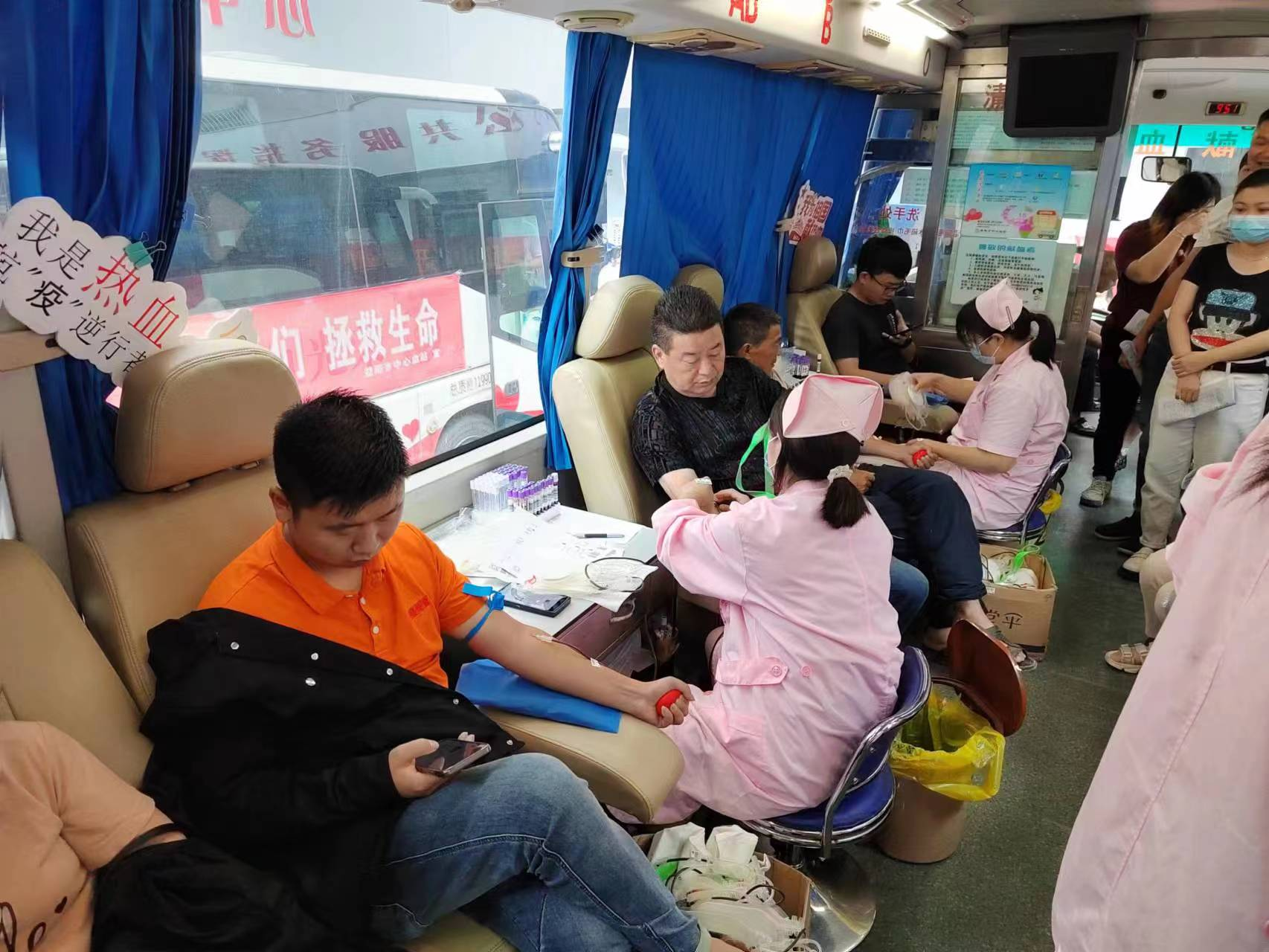 早上8点不到,前来献血的干部群众排起了长队,填表、化验、抽血……所有流程都在工作人员的引导下有序进行。工作人员还为参加义务献血的同志送上温开水和关怀的问候。该乡社会事务办工作人员高浩虽然是第一次献血,但他在工作人员的帮助下,一点都没感到紧张。“希望我的爱心举动,能够为病患提供帮助。”他一边献血一边同旁边的同事交流。