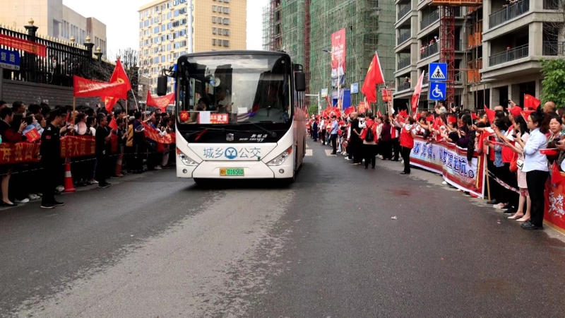上午8点18分,一声声“高三加油 高考必胜”的呐喊伴随着送考专车缓缓驶离校园,奔赴考场。嘹亮的声音此起彼伏,响彻校园上空,喊出了凌云壮志和未来可期,像应战的鼓声直冲云霄,鼓舞着高三学子们奋勇争先。
