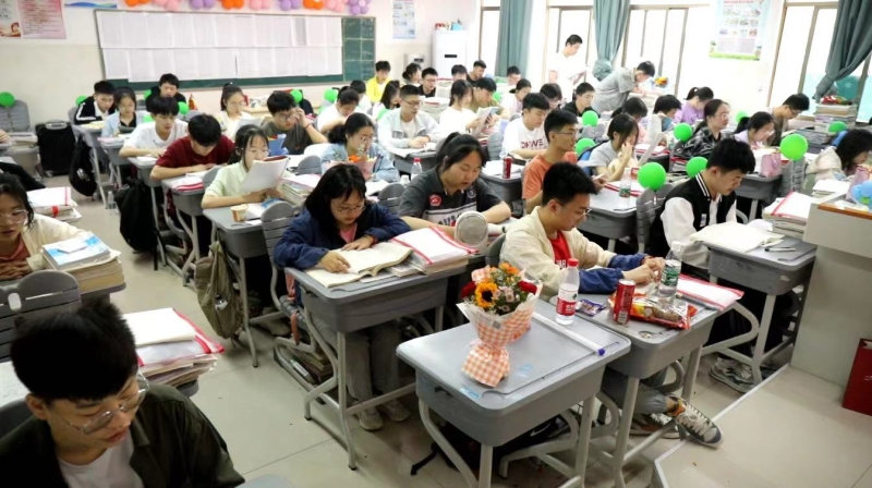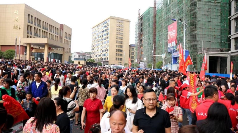 镇区街道上,人声鼎沸,对高三学子们殷殷期望和深深祝福,祝愿学子们乘风破浪,笑傲高考,蟾宫折桂,高歌凯旋。