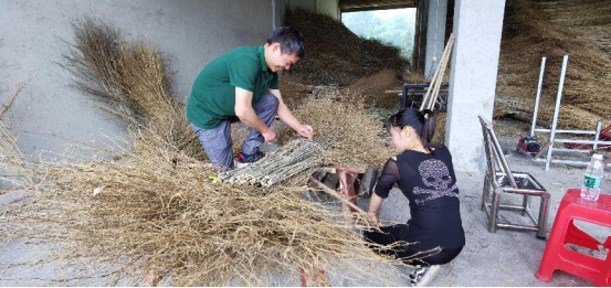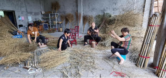 艺阳仑富民农业合作社的扎扫把 胡卫红 摄