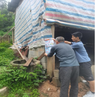 工作人员张贴《农村沼气安全使用须知》 周韩 摄