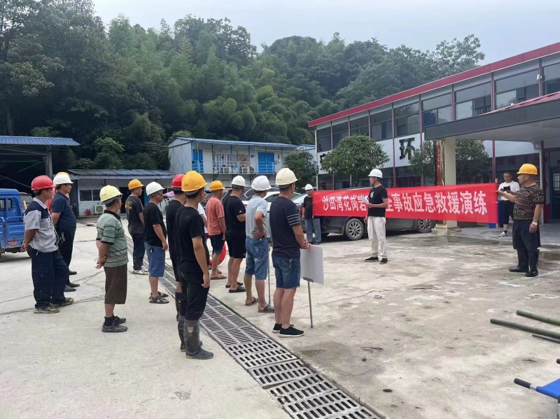 近日,地处浮邱山乡西峰寺村的桃江县金桥石业有限公司开展了一场非煤矿山生产安全事故综合应急演练。
