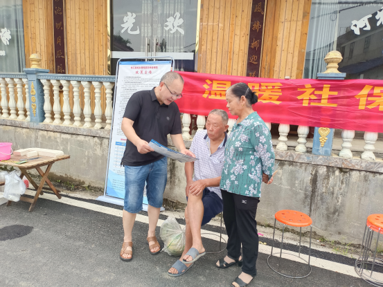 7月18日,大栗港社会事务办利用“赶集日”开展社保政策宣传活动。
