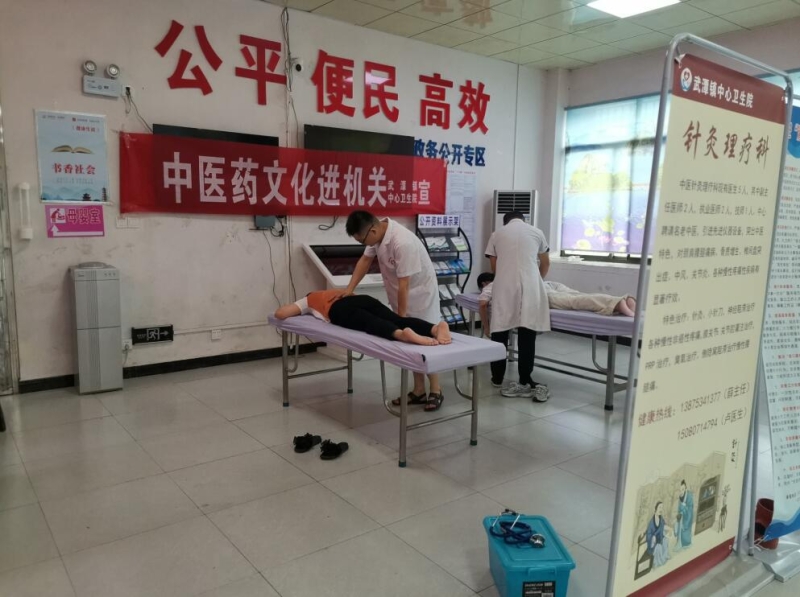 7月25日下午,武潭镇中心卫生院组织中医人员、党员志愿者开展中医药文化进机关、进社区系列活动。
