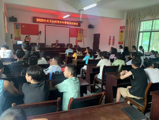 活动中,镇司法所宣讲员从毒品的种类、毒品的危害、青少年如何抵御毒品等方面深入浅出地给天子山村的青少年上了一堂禁毒知识教育课。告诉他们毒品常常包裹着诱人的“外衣”,摇身一变就成了饮料、糖果、电子烟等,哄骗青少年误食;告诫他们不要乱吃陌生人给的任何食物,不结交不务正业的社会朋友,在日常生活中要时刻对毒品保持警觉戒备意识;教他们如何辨别毒品原植物,以及关于禁种铲毒的相关政策和法律法规,一旦发现种植毒品原植物,要立刻向公安机关报告。