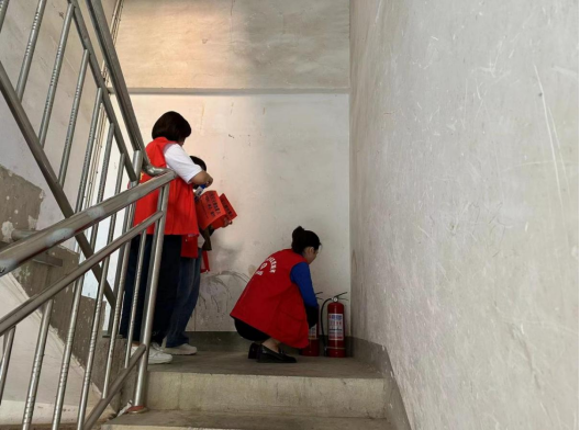 在开放式小区楼梯间放置灭火器 胡雅菁 摄