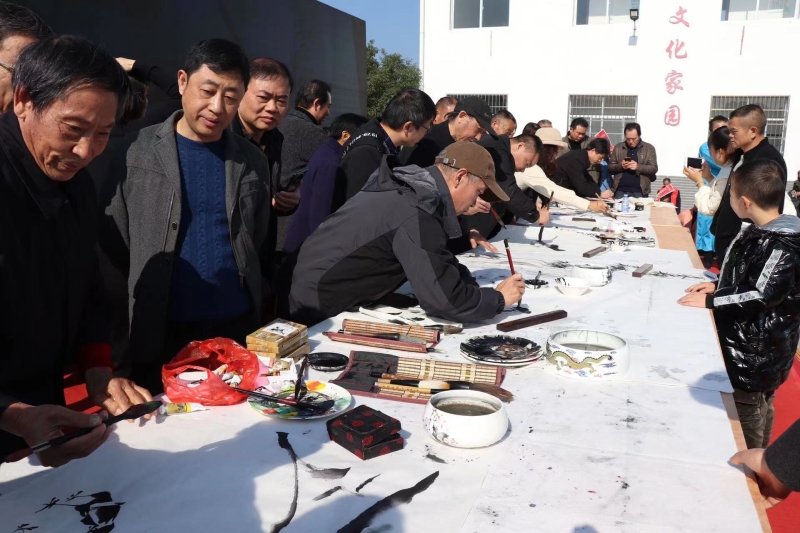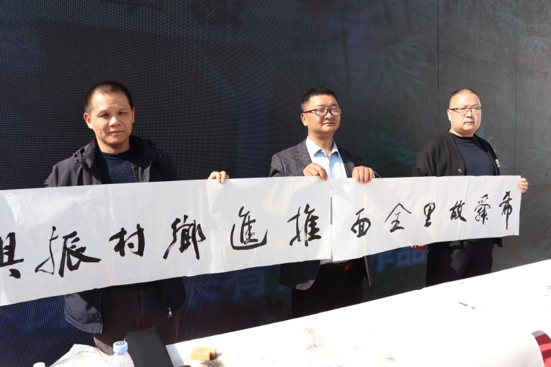 授牌仪式后,市、县书画家在企石村党群服务中心,围绕乡村振兴、新时代农村发展变化等进行书写和绘画,并将一幅幅主题鲜明、寓意深远的书法作品赠送给该村的干部群众。