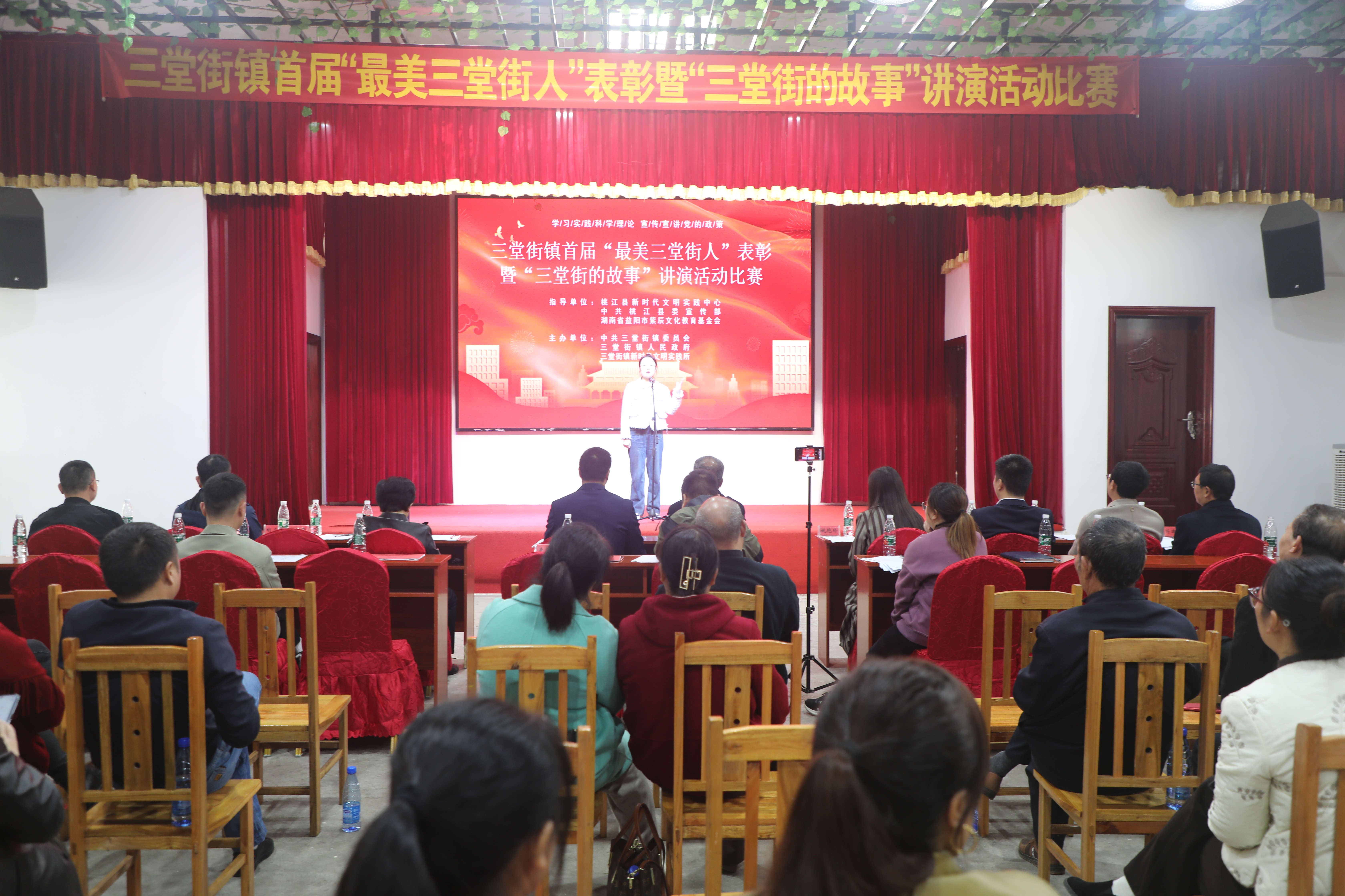 当天上午,活动表彰了该镇“最美志愿者”“最美家庭”“最美邻长”“最美儿媳”“最美职工”等。随后,来自全镇各村和镇机关的17名参赛选手,通过PPT结合故事的形式开展演讲,讲述了明末江南巡抚郭都贤、清朝进士龙驹、民国名儒龙逸才、黄埔一期中将胡骐山和龙牙寺、松风书院等与三堂街有关的深厚人文历史和风物传说,以及当代三堂街人团结一心,齐心合力建设秀美水岸小镇的精神面貌,演讲内容即接地气又提振精神,让台下观众掌声不断。