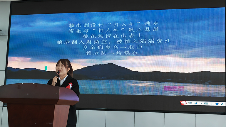 比赛中,选手们用富有激情和感染力的语言,围绕桃花江的历史文化、羞女山传说、修山面和擂茶等主题,讲述着一个个发生在桃江的精彩故事,现场气氛热烈,掌声不断。