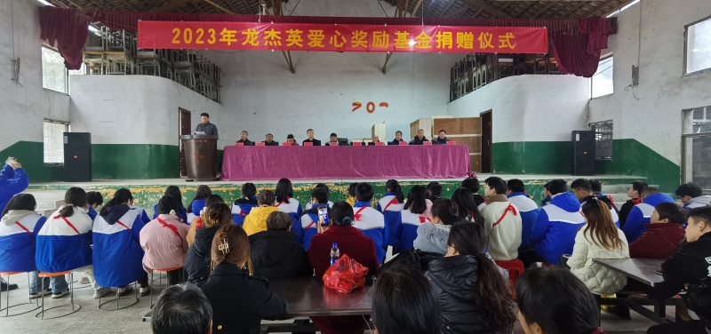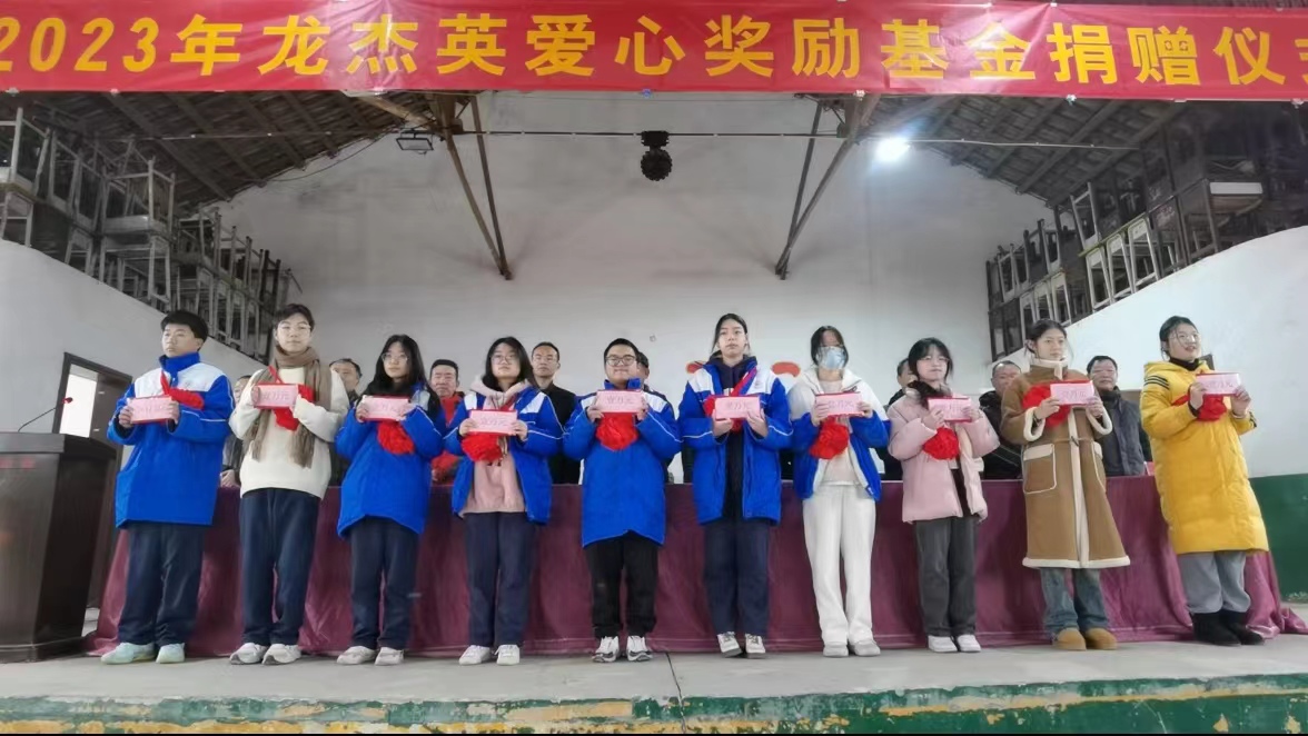 12月29日上午,2023年龙杰英爱心奖励基金捐赠仪式在三堂街镇合水桥中学举行。