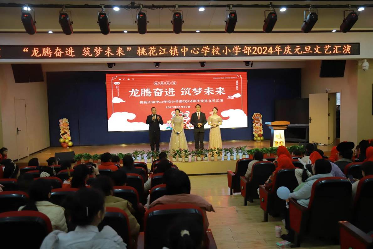 欢歌庆元旦,金龙迎新年。为丰富教职工的文化生活,增强教师团队凝聚力,创设文明、健康、和谐的校园文化氛围,12月29日,桃花江镇中心学校小学部工会组织全体教职工开展了以“龙腾奋进,筑梦未来”为主题的文艺汇演活动。