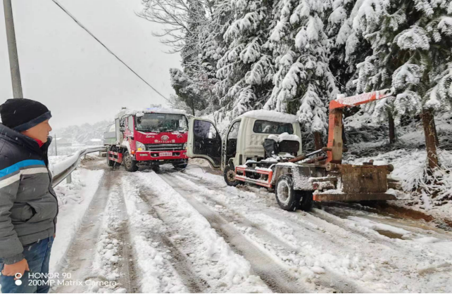 石牛江镇第一时间集结民兵应急队伍,先后前往幸福路、振兴路、环线公路等地,针对辖区主要交通干线及山区周边道路进行清雪除冰工作。大家有的撒盐融冰、有的铲土防滑、有的清理拦路树枝,在严寒中升腾出浴“雪”奋战的火热场面。在大家的共同努力下,全体民兵共清理路段10余公里,帮助3台侧滑车辆脱困,道路积雪被一一清除,开辟出一条条“平安路”“温暖路”,有效保障了人民群众的出行安全。