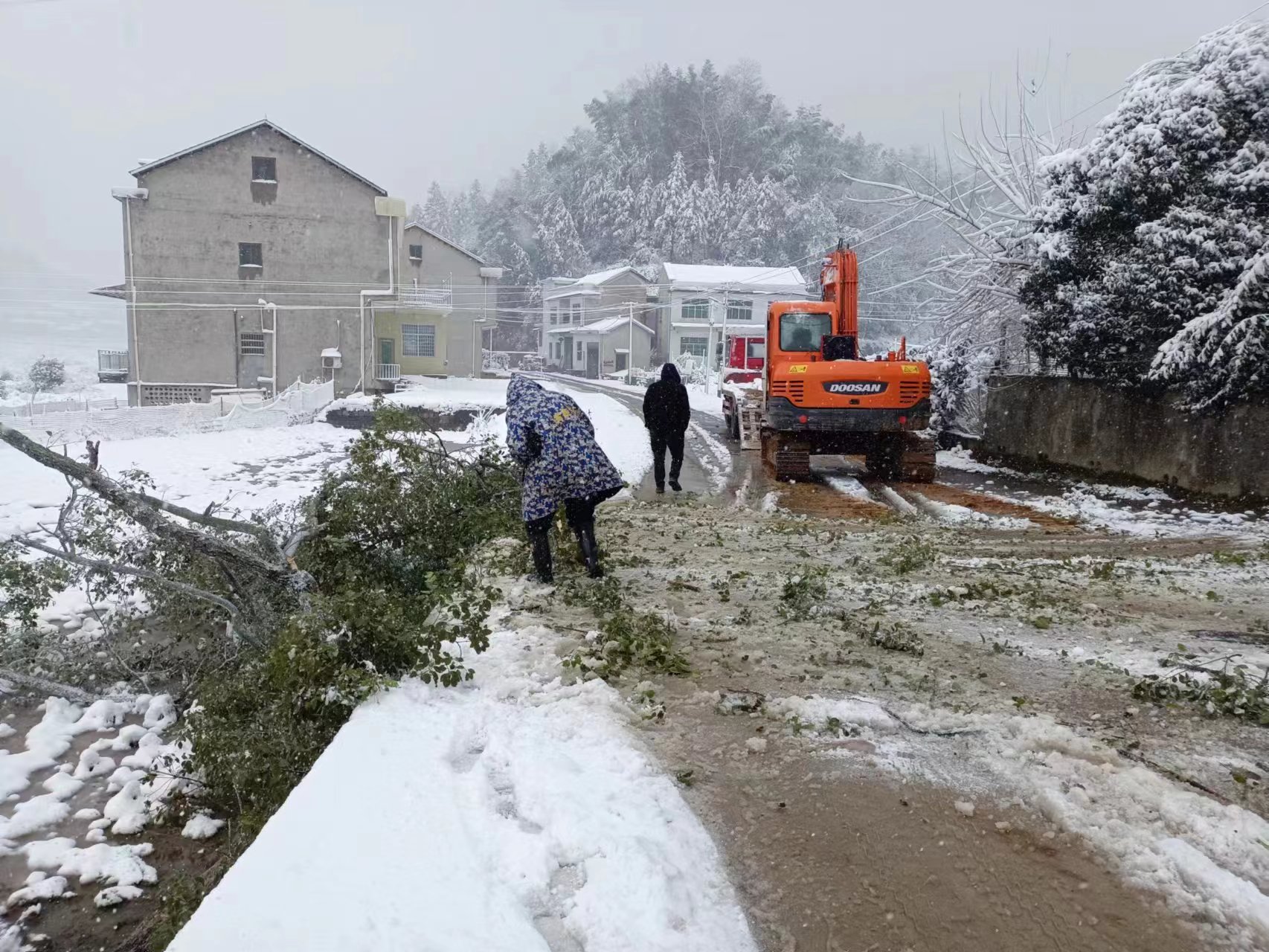 武潭镇联合派出所、交通执法七中队在S319路段清理积雪 胡蕾 摄
