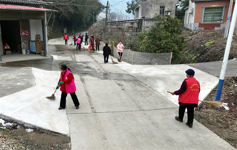 高桥镇石头坪村的志愿者们在开展全民清扫日活动 刘俊 摄