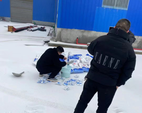 为应对低温凝冻天气,切实做好抗凝冻、保企业安全生产工作,将凝冻天气对企业生产的影响降到最低,沾溪镇政府为企业开展了一次除雪行动。主要针对不便人工除雪的企业钢架棚厂房,利用无人机撒播优势,减少人工操作风险的同时,提高了撒盐工作效率,防止企业财产损失进一步扩大。