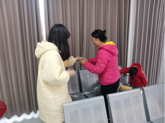 工作人员为办事群众送上热水 张晓燕 摄