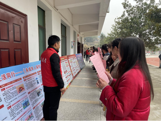 2月28日,松木塘镇在镇中心学校开展“利剑护蕾”专项行动大型宣传活动。